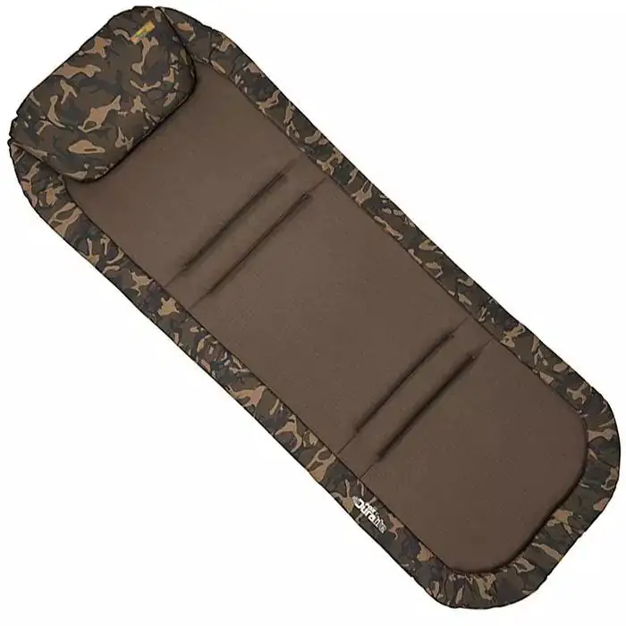 Die Schaumstoffmatratze und Polyester mit Netz Obermatratze reduziert das Gesamtgewicht und hilft mit Belüftung. Der Camo Matratzenrand aus festerem Schaumstoff, reduziert die Kompression vom Liegerahmen. Klettverschluss-Streifen auf der Matratzenunterseite passen zu allen Fox Schlafstuhl Bezügen und Verbindungsreißverschlüsse auf der Liegeunterseite ermöglichen das Wechseln der Duralite-Schlafsäcke.