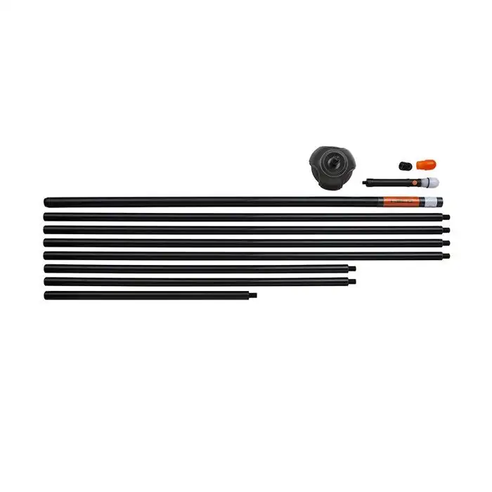 - Mitgelieferte Stangen: 8 x 1m, 2 x 0.5m, 4 x 0.75m (alle mit 22mm Durchmesser) und 2 x 1m Spitzenteil (27mm Durchmesser) – Gesamtlänge 14m