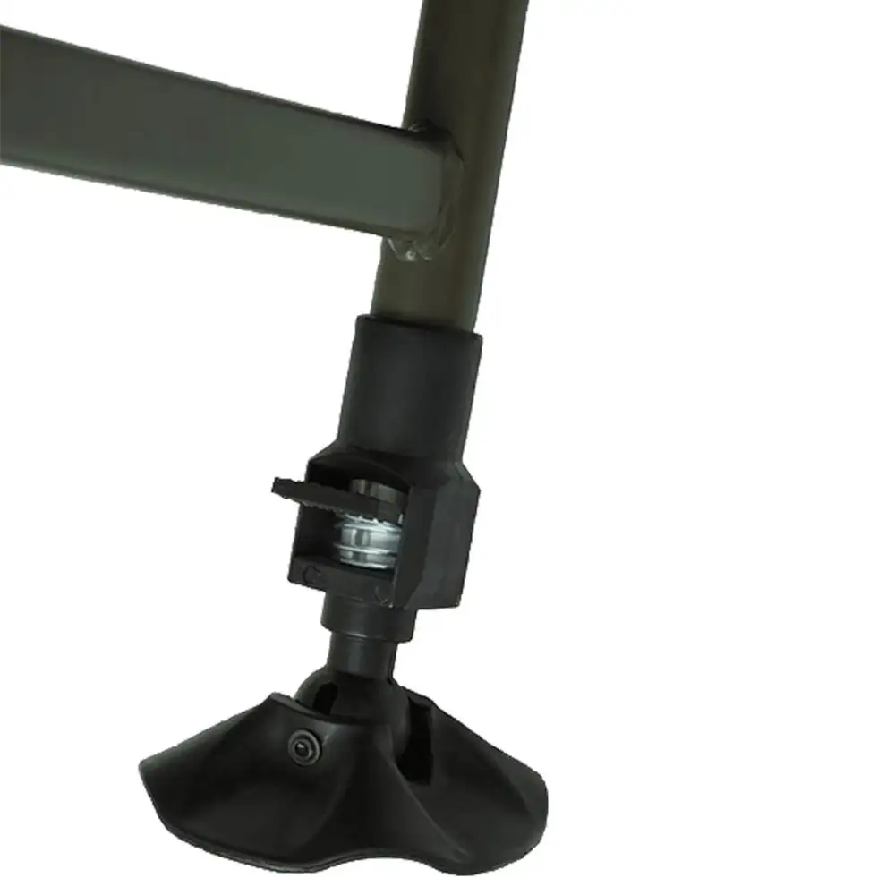 Doppelte Scharniere ermöglichen das Einlegen vom Fox Camo Schlafsack und einzigartige Seitenriemen für ein kompaktes Bett, wenn es verpackt ist. Mit sechs Beinen bietet diese Angelliege eine hervorragende Stabilität und zur weiteren Verbesserung ihrer Stabilität sind zusätzlich schwenkbare Schlammfüße an jedem Bein montiert.